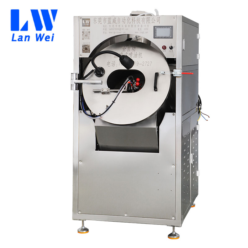 滚筒式自动喷油机内设自动烘干功能,喷涂均匀、快速,根据产品的性质特点可自由调节温度高低,能喷高光产品,省油300%以上,效率提升5倍以上,一人可同时操作7-8台机器,结构新颖,体积小方便摆放,操作简单易学。自动滚喷漆机具有很强大的工作效率,材料选用好钢材,内有不锈钢滚筒,滚筒是自动喷涂设备中的易损件,材质直接影响使用寿命。